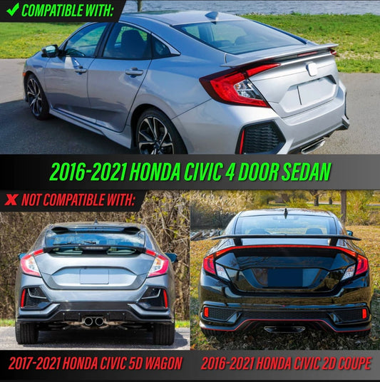 2016-2021 Honda Civic 4D Sedan All Clear Lens Built In Red LED Bars 4PC Tail Lights