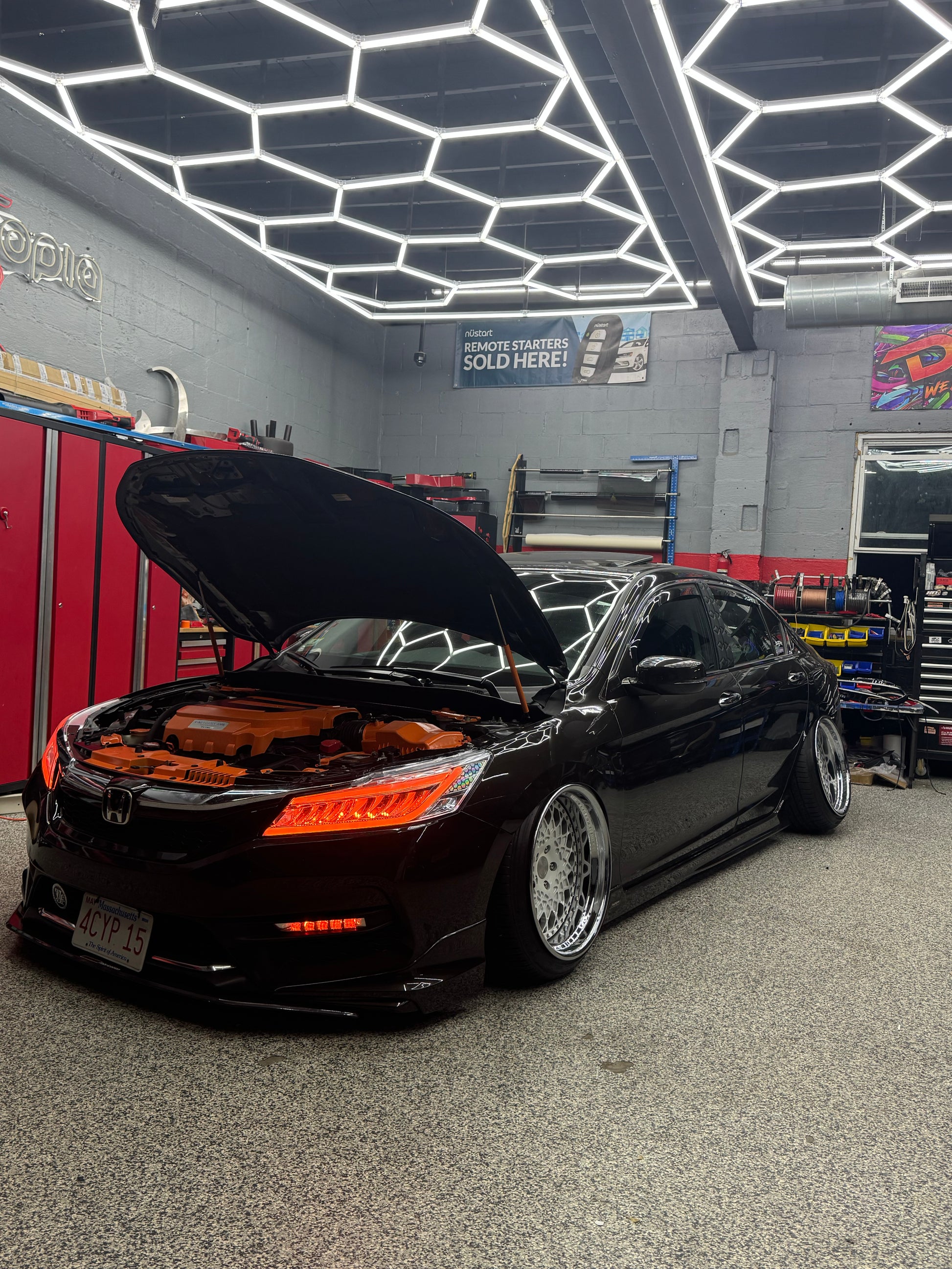 Complete set of custom headlights and fog lights for the 2013-2017 Honda Accord.