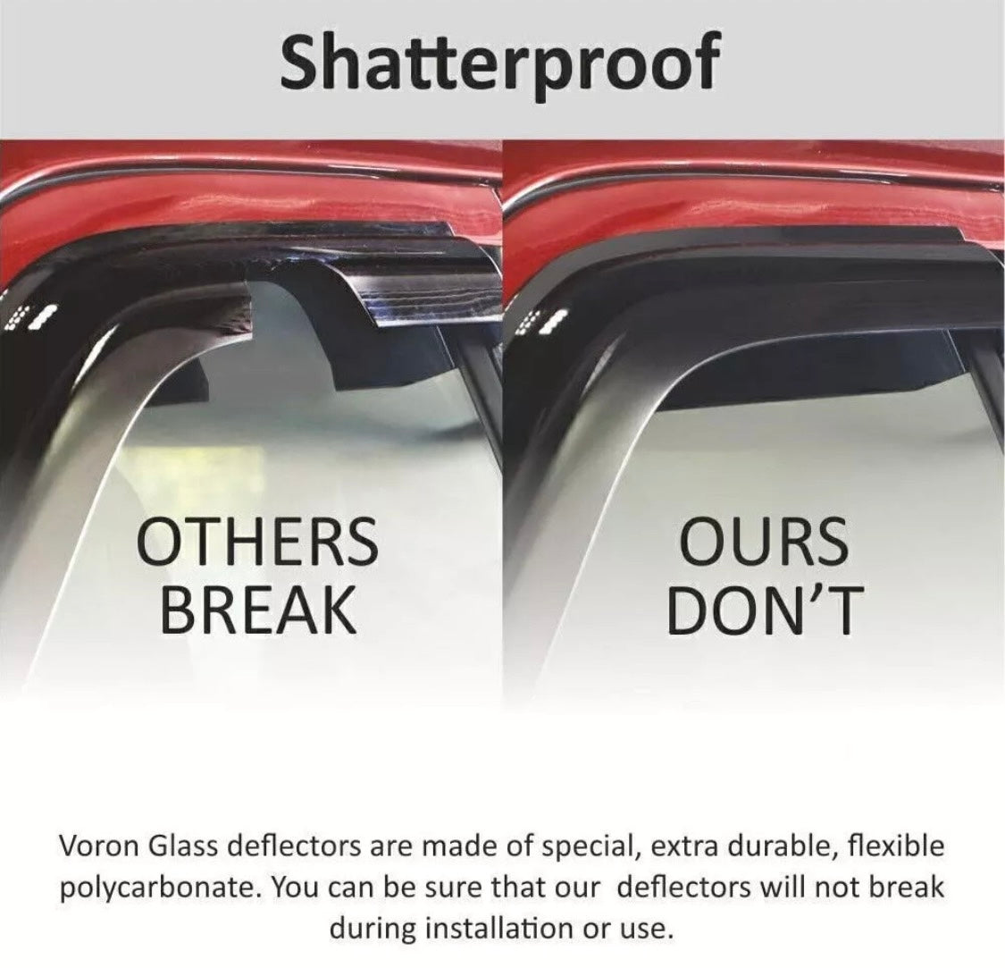 The window visors are engineered by using cutting-edge technology to reduce noise, deflect rain whilst and keep cabin cooled. The 6-piece set comes with easy to install 3M tape and installation manual.