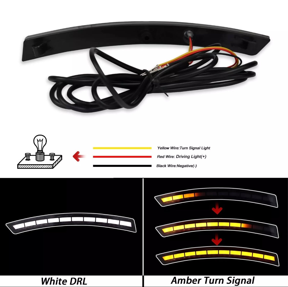 Simple wiring is necessary. Black wire to Negative; Red wire to DRL/ACC+; Yellow wire to turn signal. No modification required.