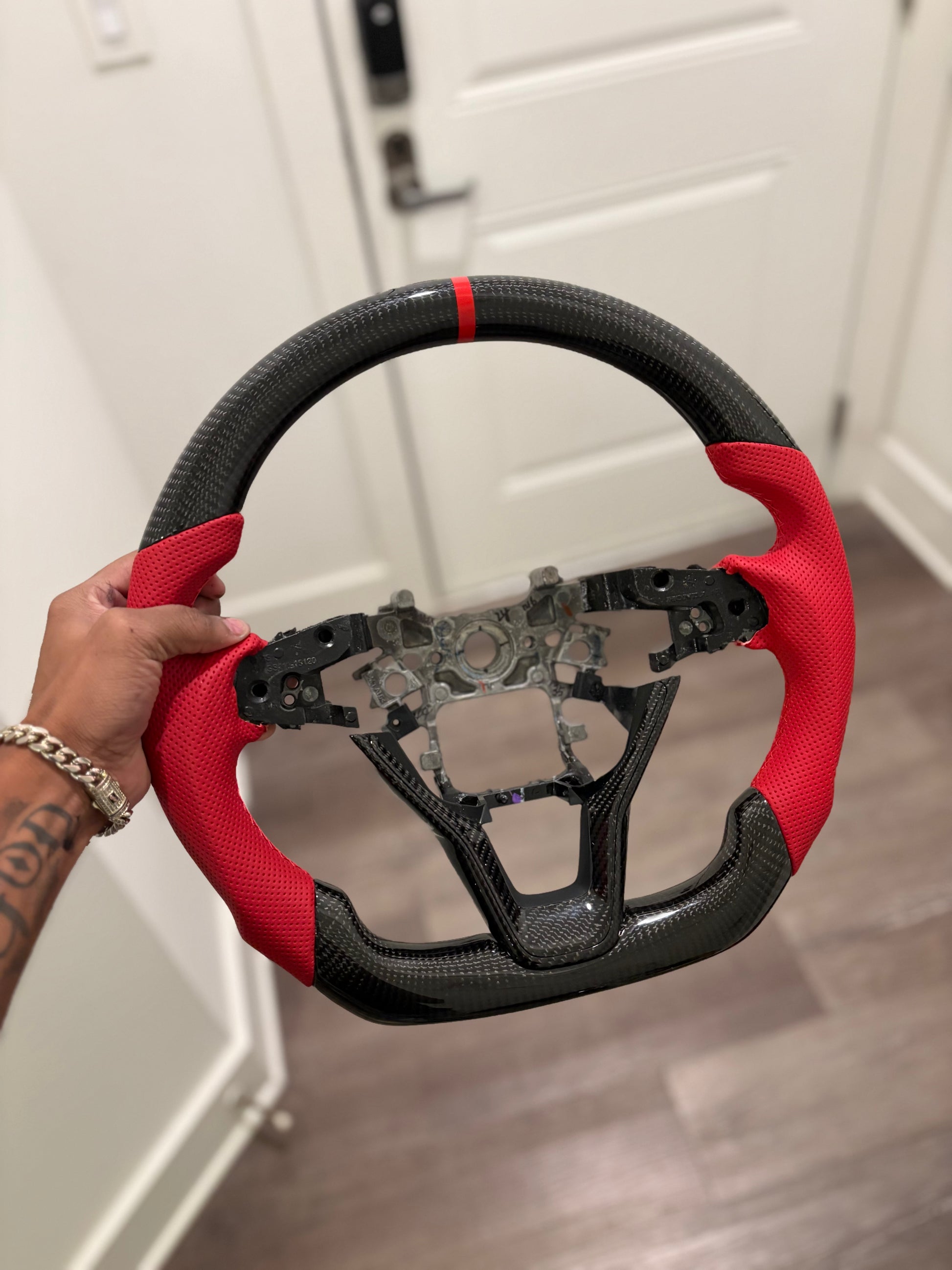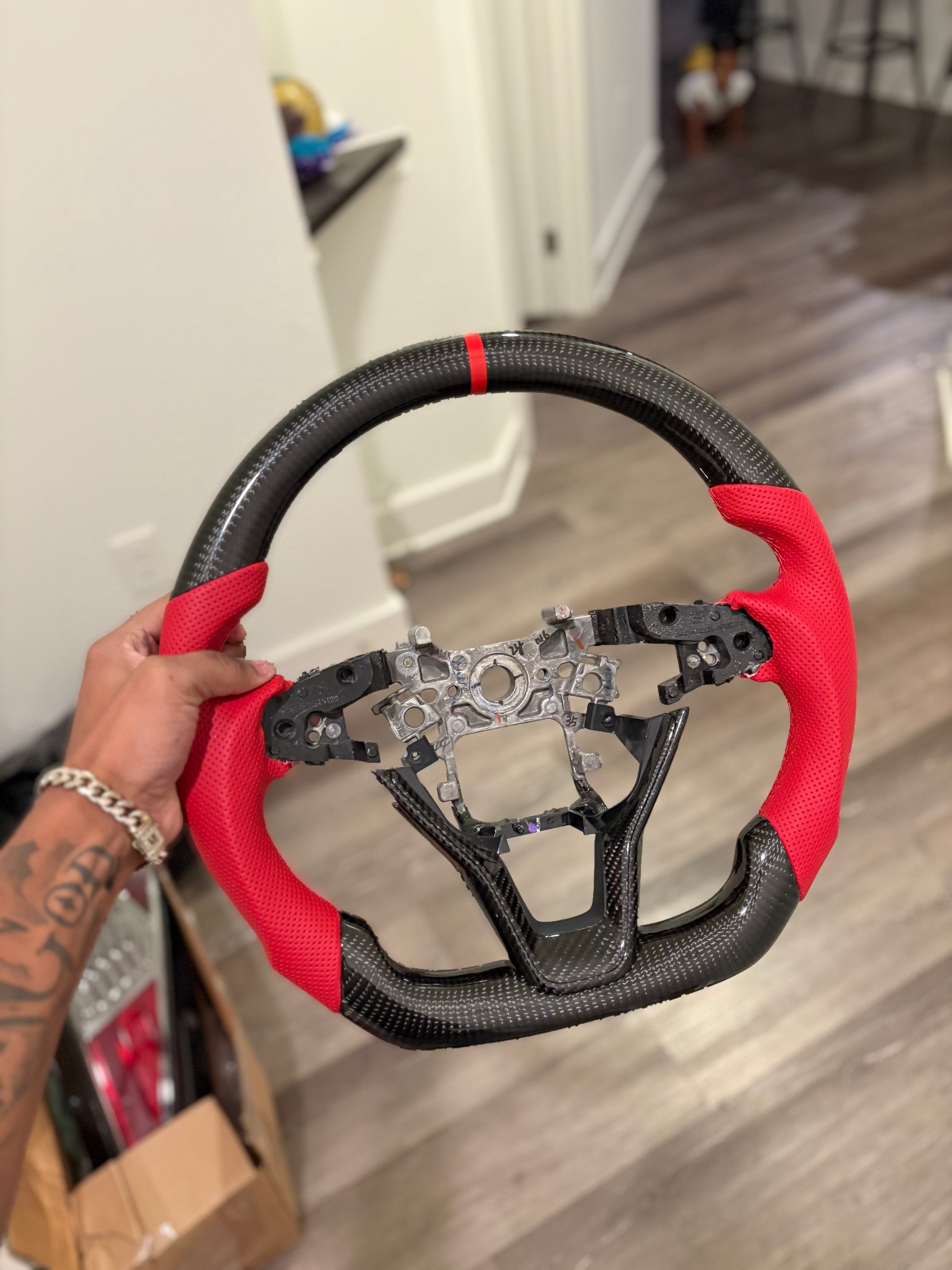 Real Carbon fiber steering wheel Honda Accord 10th 2018 ~ 2022 Red Leather