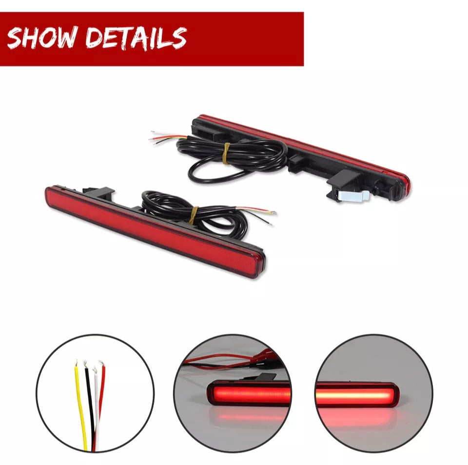 - Directly replace the OEM rear bumper light-less reflectors with super bright LED tail/brake light and rear fog running lights